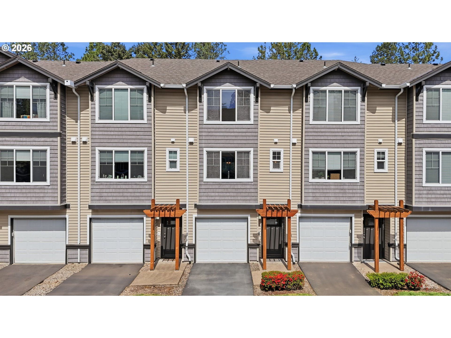 Tucked into the quiet, tree-lined setting of Autumn Reserve, this well-maintained townhome offers a functional, low-maintenance lifestyle in a highly convenient location, set back from the street for added privacy. The main level features an open-concept layout with strong natural light, a gas fireplace, and seamless flow between living, dining and kitchen spaces. The kitchen is designed for both everyday use and entertaining, complete with slab granite countertops, a large island, stainless steel appliances, gas range, ample storage and an entertainer's half bath. Step out to the private balcony with green space and treed views. Upstairs, the home has dual primary suites, each with its own en-suite bathroom, providing flexibility for guests, roommates, or work-from-home needs. Laundry is conveniently located on the same level. Additional features include A/C, an attached oversized tandem garage with built-in storage/an area for a workbench, and HOA-maintained exterior for ease of ownership. Just minutes to Tanasbourne shopping, dining, MAX transit, and quick access to Hwy 26, Nike and Intel, this is a well-rounded, move-in ready home in a highly connected location.[Home Energy Score = 8. HES Report available at https://us.greenbuildingregistry.com/green-homes/OR10196179] [Home Energy Score = 8. HES Report at https://rpt.greenbuildingregistry.com/hes/OR10196179]